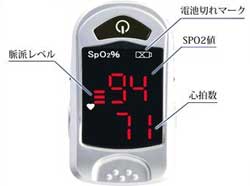 簡易スクリーニング検査で使われる酸素飽和度測定器です。